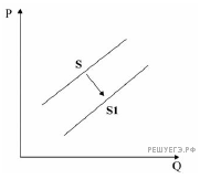 На рисунке отражена ситуация на рынке услуг сотовой связи: линия предложения S переместилась в новое положение — S1 (на графике Р — цена товара, Q — количество товара). Это перемещение может быть связано прежде всего с.