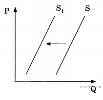 На графике отражено изменение предложения местных сезонных ягод на соответствующем рынке: кривая предложения переместилась из положения S в положение S1 (на графике Р — цена товара‚ Q — количество товара).