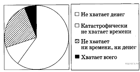 Фонд «Общественное мнение» (ФОМ) провел исследование, посвященное проблеме свободного времени. Чтобы разобраться, чего не хватает нашим гражданам для полноценного отдыха, опрошенным был задан вопрос: «Чего больше не хватает для отдыха — денег или свободного времени?» Результаты опроса представлены в приведенной ниже диаграмме.