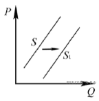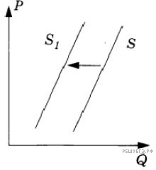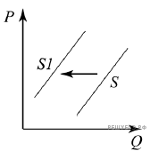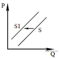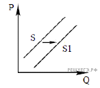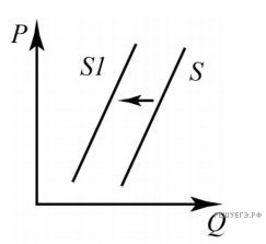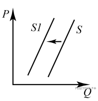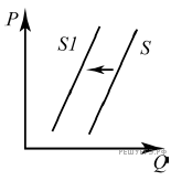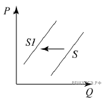 На рисунке отражена ситуация на рынке элитной кожгалантереи: линия предложения S переместилась в новое положение S1 (Р — цена товара, Q — объём предложения). Это перемещение может быть связано прежде всего с(со)