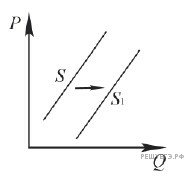 На графике изображено изменение ситуации на рынке самокатов: кривая предложения переместилась из положения S в положение S1 (на графике P — цена товара; Q — количество товара).
