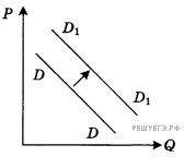На графике изображено изменение спроса на спортивную обувь на потребительском рынке: кривая спроса переместилась из положения D в положение D1. (На графике P – цена товара; Q – количество товара.)