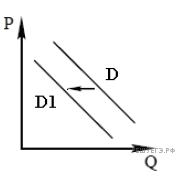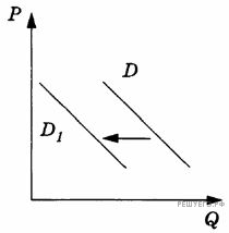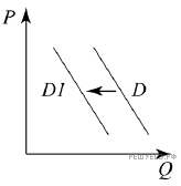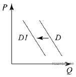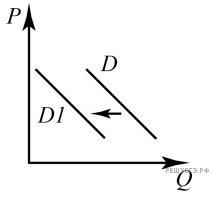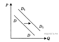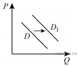 На графике изображено изменение спроса на отечественном автомобильном рынке: линия спроса D переместилась в новое положение D1 (Р — цена автомобиля, Q — объём спроса на отечественные машины). Это перемещение может быть связано в первую очередь с